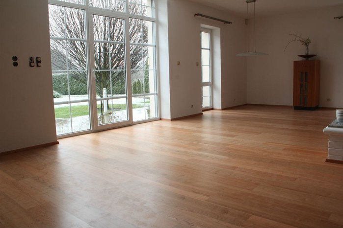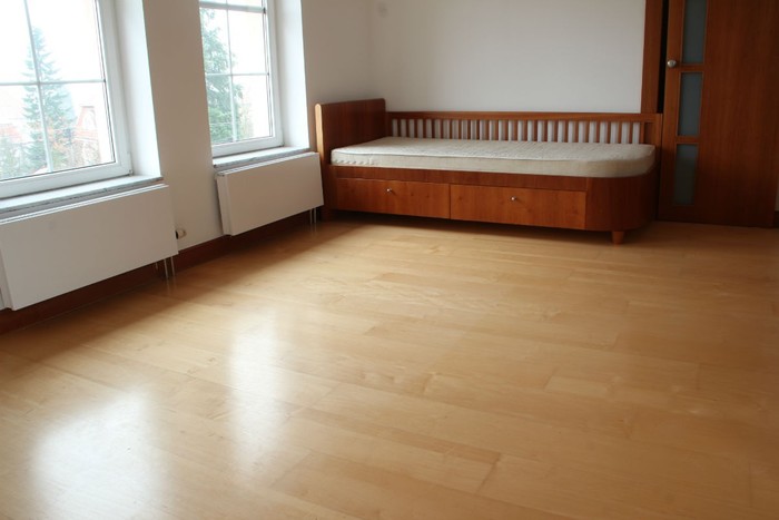 O 14 let později vila změnila majitele, ale nikoli podlaháře. Zavítali jsme tedy na prohlídku a zjistili, že podlahu v přízemí poškodila voda při havárii myčky. Oprava byla nutná. Podařilo se nám poškozené parkety Par-ky nahradit těmi samými a to ve stejném dekoru třešně, jejichž vrchní vrstvu tvoří matný lak. Ve vyšších patrech došlo pouze k důkladnému vyčištění a to za vydatné pomoci sympatické paní majitelky. Díky těmto úpravám se výrazně prodloužila životnost dřevěné podlahy.